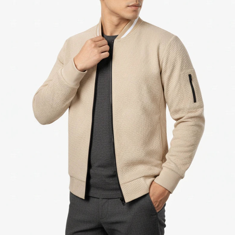 Meticulously crafted with a textured finish and clean silhouette, its lightweight structure is a masterclass in transitional sophistication. This isn't just a bomber for a season, but an investment in your personal legacy—a signature piece for the discerning gentleman who understands that true refinement is never loud, but always present.