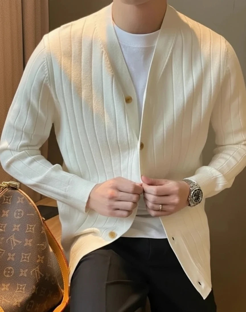Meet your new cornerstone piece. The Regent's Cardigan is crafted not just for one season, but for a lifetime of style. We've engineered a premium, soft-touch blend that offers substantial warmth without bulk, holding its shape wear after wear. The refined vertical texture adds a sophisticated, slimming effect that sets it apart from ordinary knits. Designed with a modern, relaxed silhouette for effortless layering, it’s the perfect bridge between boardroom sharp and weekend refinement. This is accessible luxury—an investment in timeless comfort and polish.